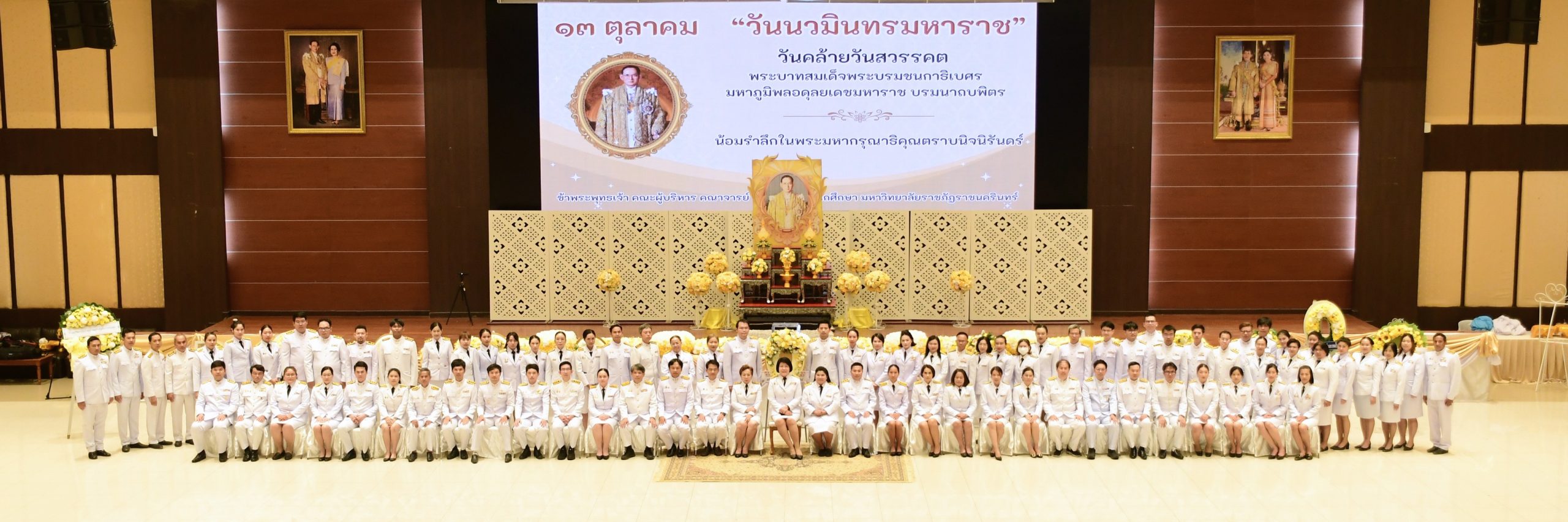 8 ต.ค. 68 เวลา 13.00 น. รองศาสตราจารย์ ดร.ดวงพร ภู่ผะกา อธิการบดีมหาวิทยาลัยราชภัฏราชนครินทร์ นำคณะผู้บริหาร คณาจารย์ บุคลากร และนักศึกษา ร่วมกิจกรรมน้อมรำลึกพระมหากรุณาธิคุณ เนื่องในวันนวมินทรมหาราช วันคล้ายวันสวรรคต พระบาทสมเด็จพระบรมชนกาธิเบศร มหาภูมิพลอดุลยเดช บรมนาถบพิตร ในหลวงรัชกาลที่ 9 ซึ่งเป็นกิจกรรมในภาคบ่าย ประกอบไปด้วยพิธีวางพวงมาลาหน้าพระบรมฉายาลักษณ์ การกล่าวน้อมรำลึกในพระมหากรุณาธิคุณ และยืนสงบนิ่งเป็นเวลา 89 วินาที ณ ห้องราชนครินทร์ ชั้น 5 อาคารราชนครินทร์