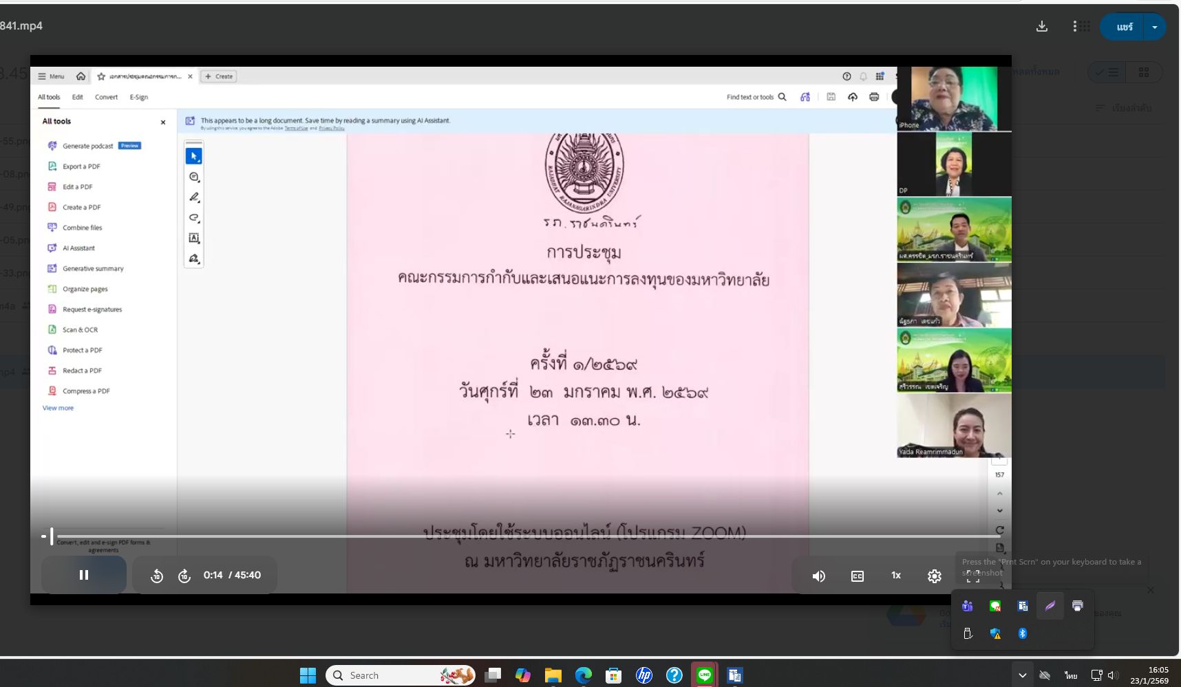 23 ม.ค. 69 เวลา 13.30 น. นางสาวเฟื่องฟ้า เทียนประภาสิทธิ์ กรรมการสภามหาวิทยาลัย ผู้ทรงคุณวุฒิ เป็นประธานการประชุมคณะกรรมการกำกับและเสนอแนะการลงทุนของมหาวิทยาลัย ครั้งที่ 1/2569 ผ่านระบบออนไลน์ (โปรแกรม ZOOM)